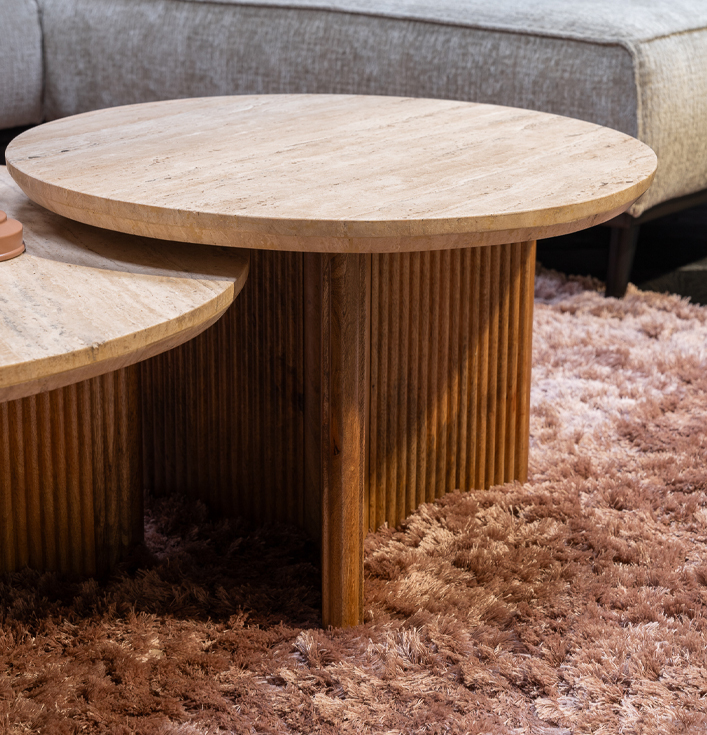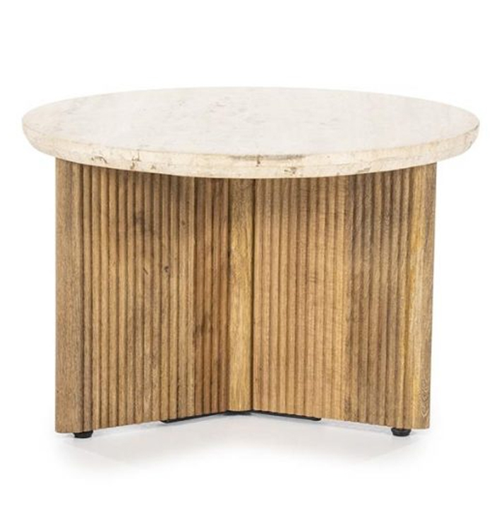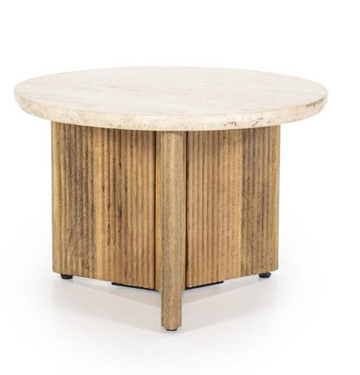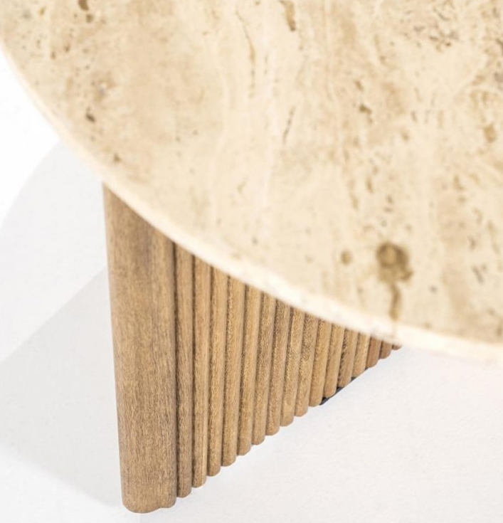 Dankzij zijn tijdloze uitstraling past de Bijzettafel Sara perfect in zowel moderne als klassieke interieurs. Het travertin blad voegt een natuurlijke charme toe, terwijl de houten poten zorgen voor een warme uitstraling. Dit meubelstuk is niet alleen een functionele toevoeging, maar ook een stijlvol detail in je inrichting. De bijzettafel biedt voldoende ruimte voor het neerzetten van je favoriete boeken, een plant of een mooie vaas, waardoor het een praktische en esthetische meerwaarde biedt aan je ruimte.