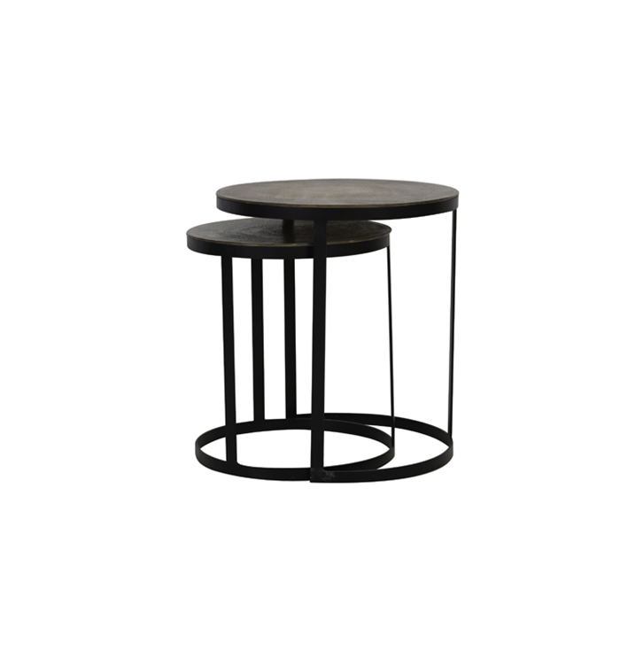 De bijzettafel set Tarente is een perfecte aanvulling op ieder interieur. De tafels hebben een elegant design met een antiek bronzen blad en een strak zwart metalen onderstel. Deze combinatie zorgt voor een moderne, maar toch tijdloze uitstraling.