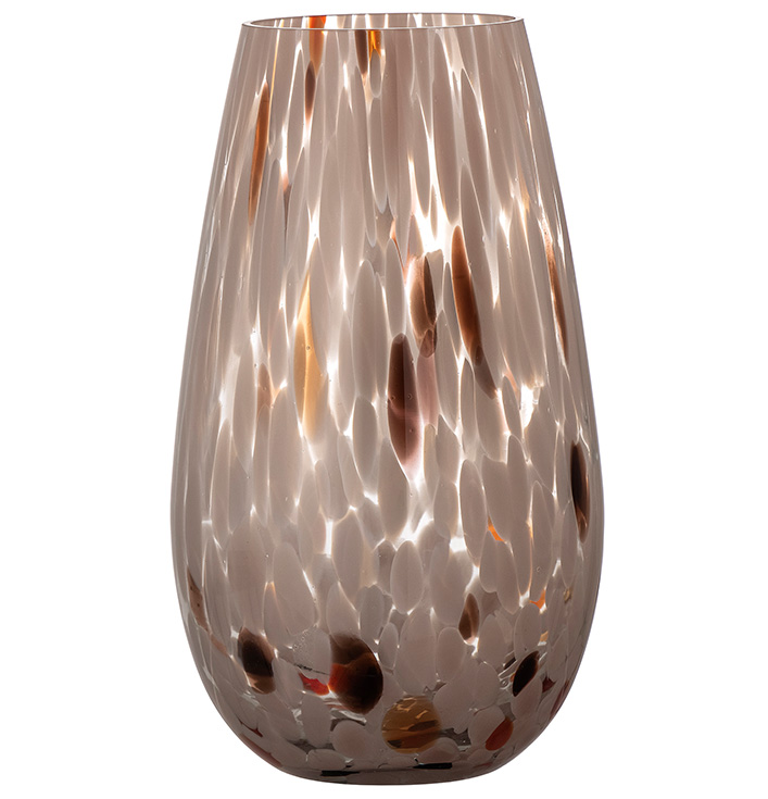 de vaas een prachtig gevlekt patroon in zachte kleuren, waardoor deze ook zonder bloemen een decoratieve uitstraling heeft.