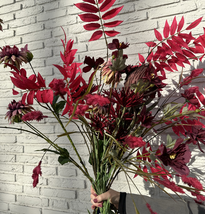 Combineer dit prachtige boeket met een elegante vaas om de kleuren volledig tot hun recht te laten komen. De bloemen staan prachtig in een hoge, smalle vaas, waardoor ze een luxe en verfijnde uitstraling krijgen. Daarnaast is het een perfecte oplossing voor wie houdt van natuurlijke schoonheid, zonder de zorg die echte bloemen vereisen.