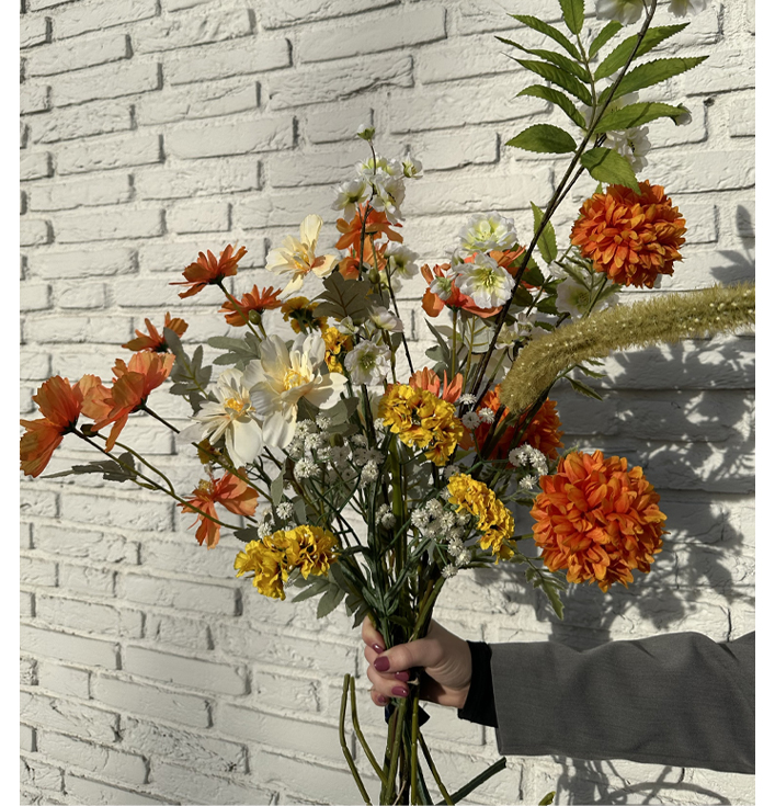 Combineer dit zonnige boeket met een hoge, glazen vaas om de warme kleuren volledig tot hun recht te laten komen. Het past prachtig op een eettafel, bijzettafel of zelfs in de vensterbank. De kleuren stralen positiviteit uit en brengen een vleugje optimisme in elke ruimte.