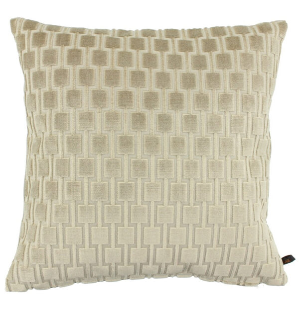 50 cm en 60 x 60 cm. Bovendien heeft het een prachtige beige kleur en is het uitgevoerd in een zachte velours stof. Het kussen heeft een strakke, grafische print die zowel stoer als chique is.