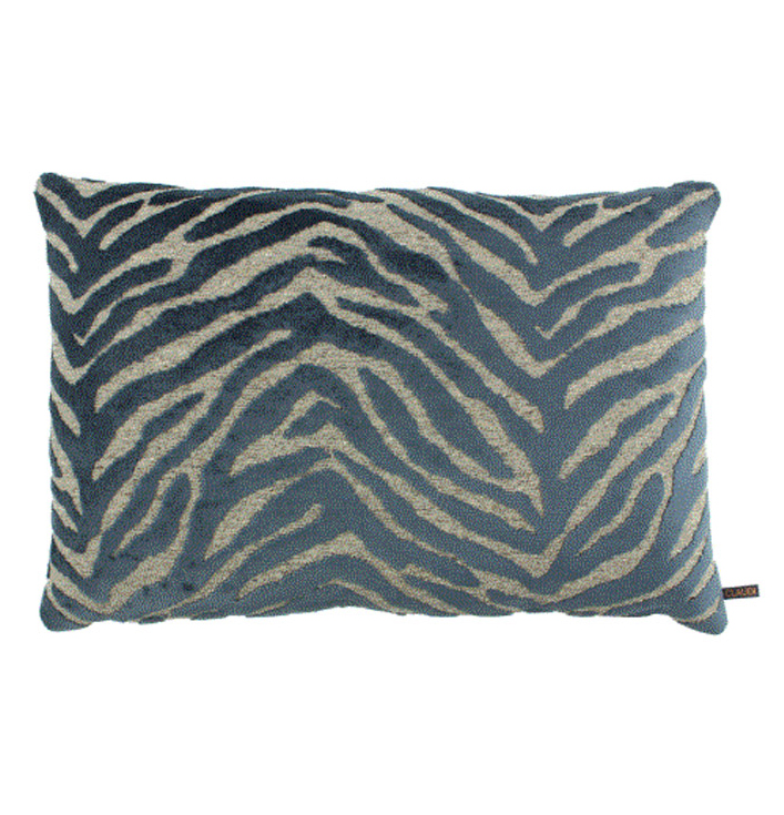 - Blauwe zebra-print: Het kussen heeft een opvallende en moderne print die het interieur een speelse, maar chique uitstraling geeft.