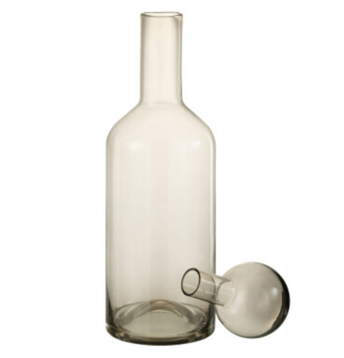Plaats de fles op een dienblad, een sidetable of een vakkenkast voor een speelse toevoeging aan je inrichting. Het grijze glas zorgt voor een rustige en verfijnde sfeer. Verder kun je de fles eenvoudig combineren met andere decoratie-items, waardoor je interieur meer samenhang krijgt.