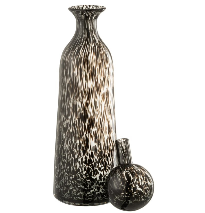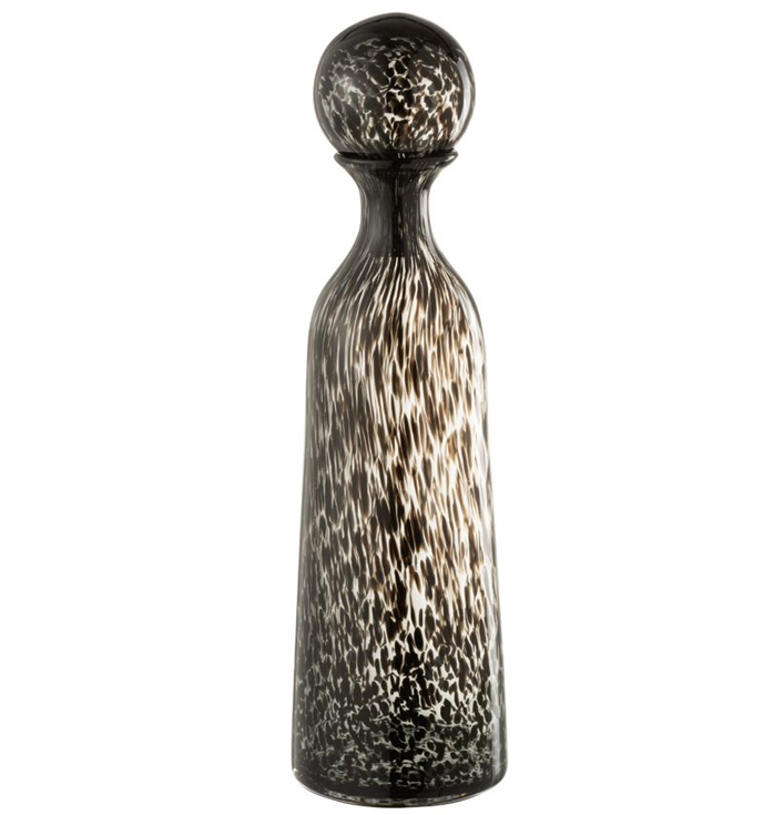 De decoratieve fles past goed bij verschillende interieurstijlen, van industrieel tot modern. Het zwarte glas maakt hem geschikt voor een gedurfde look, maar je kunt hem ook eenvoudig combineren met andere accessoires in lichte kleuren.