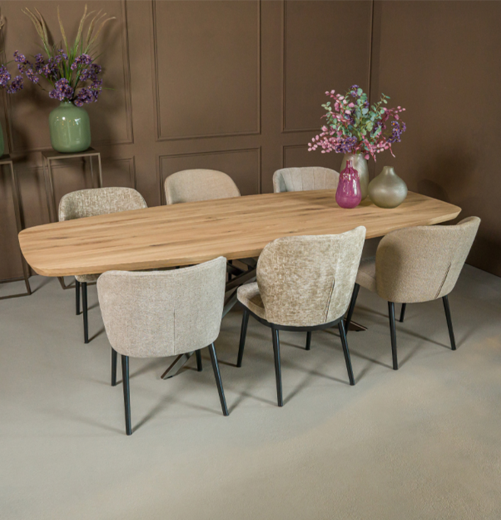 Je kunt de stof van de Eetkamerstoel Collin volledig naar eigen smaak bepalen. Er is een ruime keuze aan materialen en kleuren, waardoor er altijd een variant is die bij jouw interieur past. Bovendien bepaalt de stofkeuze de uiteindelijke prijs, zodat je zelf kunt beslissen hoeveel je investeert in stijl en comfort. Kortom, Collin is de ideale stoel voor wie design, functionaliteit en persoonlijk maatwerk belangrijk vindt.rugleuning: De gebogen vorm zorgt voor een elegante uitstraling en extra ondersteuning tijdens het zitten. Kies jouw ideale uitvoering