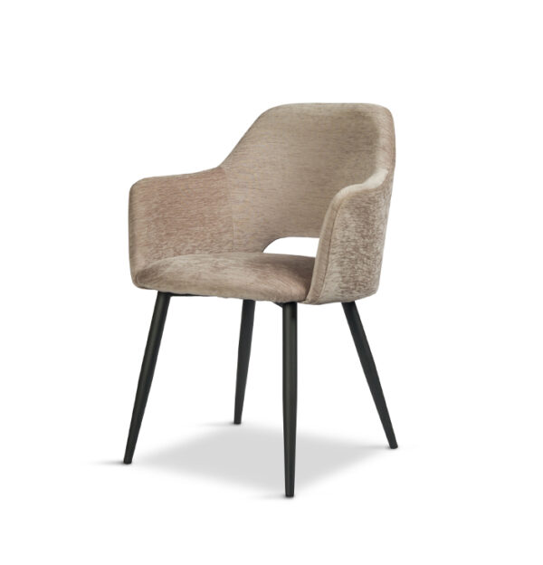 Eetkamerstoel Esmee zit heerlijk comfortabel dankzij de zachte bekleding en ronde rugleuning Het minimalistische design met open rugleuning geeft de stoel een moderne look. De perfecte stoel om gezellig te dineren en na te tafelen!