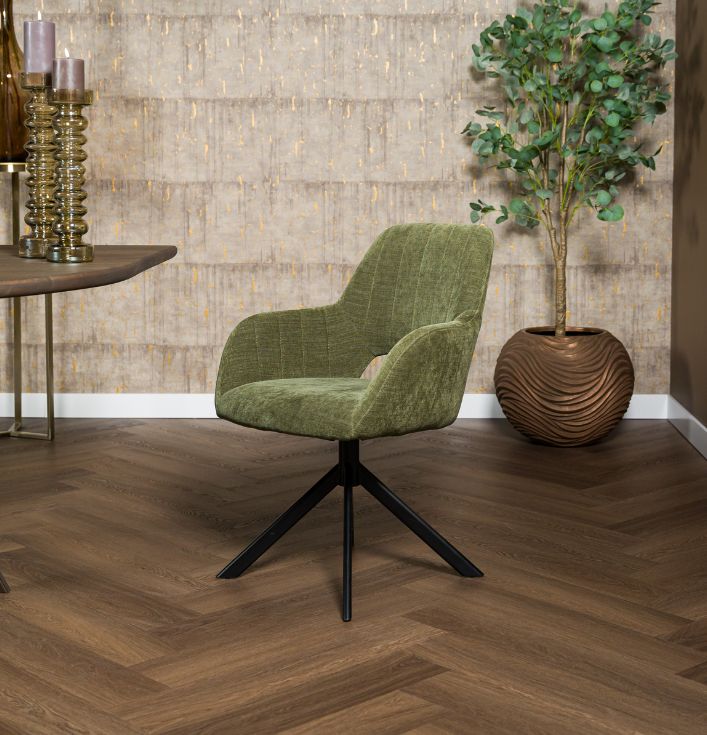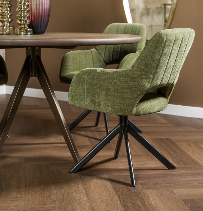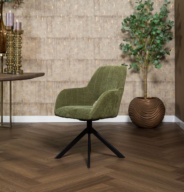 Met de Palermo stoel kun je kiezen voor een vaste poot of een draaibare variant, afhankelijk van je voorkeur voor praktische functies en design. Daarnaast kun je de poot naar wens aanpassen: zwart metaal voor een moderne uitstraling, naturel hout voor een warmere sfeer, of zwart hout voor een klassieke afwerking. De stoel Palermo biedt een breed scala aan stoffen. Of je nu kiest voor een luxueuze stof of een robuustere variant, er is altijd een stof die perfect past bij jouw interieur. Door de grote keuze kun je de stoel helemaal afstemmen op de look die je voor je eetkamer wilt creëren. De uiteindelijke prijs van de Palermo eetkamerstoel hangt af van de gekozen uitvoering. De verschillende opties voor stoffen, poten en de afwerking zorgen ervoor dat je de stoel kunt aanpassen binnen je budget. Onze adviseurs in de showroom helpen je graag met het vinden van de juiste combinatie van opties. Wil je de eetkamerstoel zelf zien en ervaren? Kom dan langs in onze showroom, waar je alle beschikbare opties kunt bekijken en uitproberen. Onze experts staan klaar om je te adviseren en helpen bij het maken van de beste keuze voor jouw eetkamer. Samengevat, de Palermo eetkamerstoel is een veelzijdige keuze voor wie op zoek is naar een stijlvolle en comfortabele stoel. Met de grote variëteit aan materialen en onderstellen is er altijd een uitvoering die perfect aansluit bij jouw wensen. Eetkamerstoel Palermo: Keuze uit Vaste of Draaibare Poot