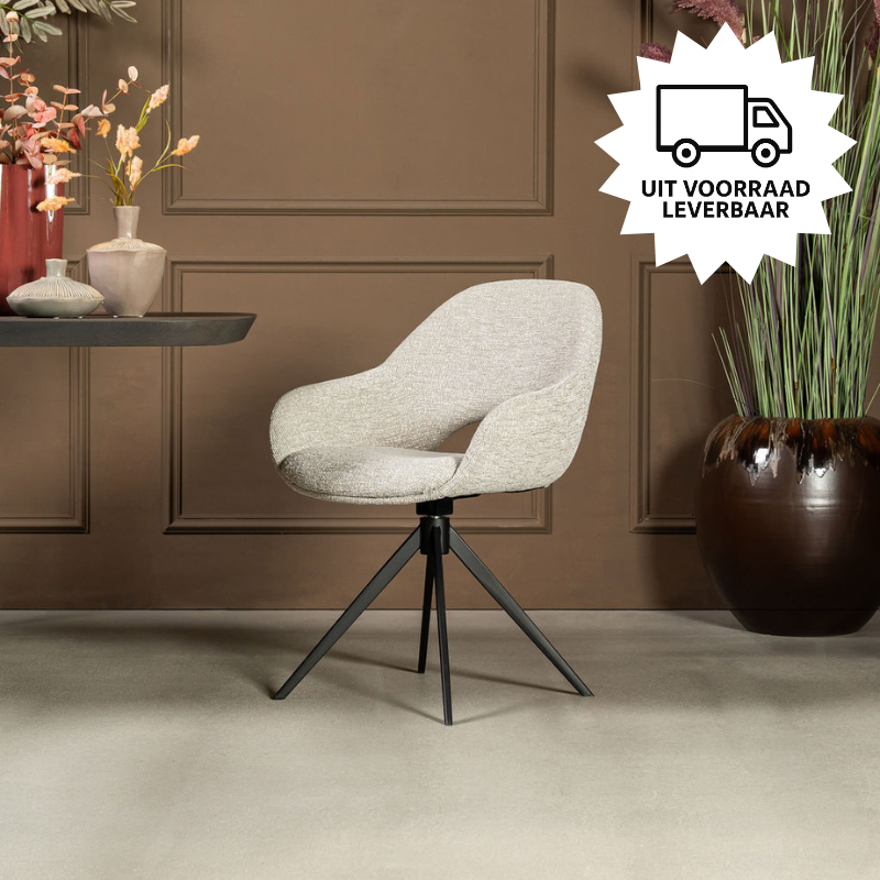 stoel een vleugje elegantie en warmte in jouw interieur. De subtiele kleur past moeiteloos in diverse stijlen, van modern tot klassiek, en geeft je eetruimte een tijdloze uitstraling.