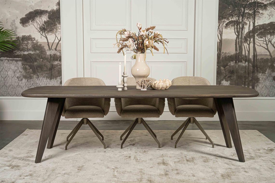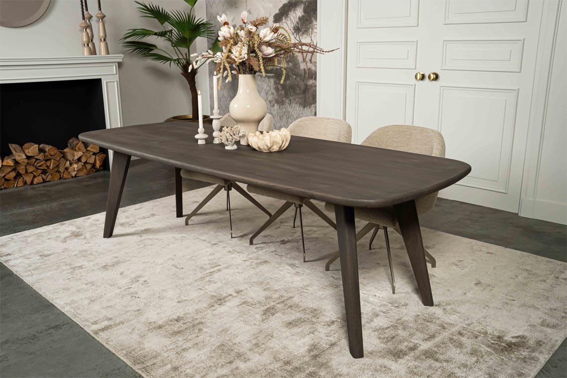 De tafel is verkrijgbaar in diverse afmetingen. Of je nu een kleine of grote eetruimte hebt, er is altijd een passende maat. Pas de rand van je tafel aan met een afwerking die bij jouw stijl past: Elke randafwerking zorgt voor een unieke uitstraling. Kies uit 9 kleuren eikenhout. Ga voor een lichte, neutrale tint of een diepe, warme kleur. Zo sluit de tafel perfect aan bij je interieur. Naast de afmetingen en houtkleur bepaal je ook de poten. Er zijn veel opties, waaronder de taps toelopende poot. Kies uit vier kleuren om de tafel volledig naar wens te maken. Deze eettafel biedt ultieme flexibiliteit en past in elke woning. De uiteindelijke prijs hangt af van jouw gekozen opties. Keuze uit Diverse Randafwerkingen