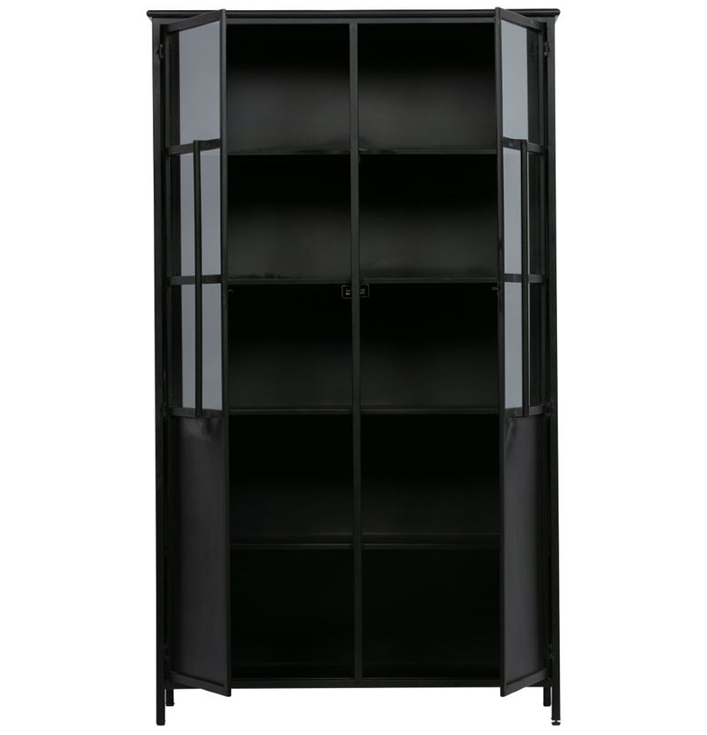 Deze Exhibit vitrinekast heeft een stoer en strak design. Dit is een kast die nooit zal vervelen in huis. Je kan hem op veel plekken in huis gebruiken denk aan de keuken, eethoek of woonkamer. Veel spullen kan je zeker kwijt in deze ruime kast met 4 legplanken. Als