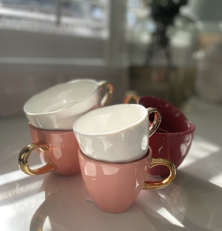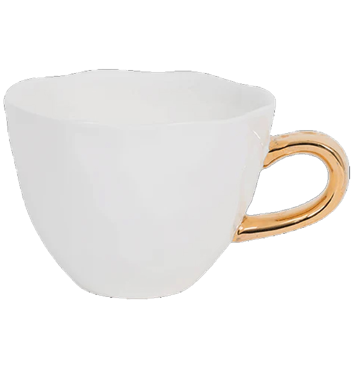 Wat deze mok extra bijzonder maakt, is de gouden rand. Bovendien zorgt de gouden touch voor een luxe uitstraling, waardoor de mok net dat beetje extra heeft. De combinatie van wit en goud is subtiel en elegant, perfect voor elke gelegenheid. Daarnaast is de mok gemaakt van steen, wat zorgt voor een stevig en duurzaam materiaal.