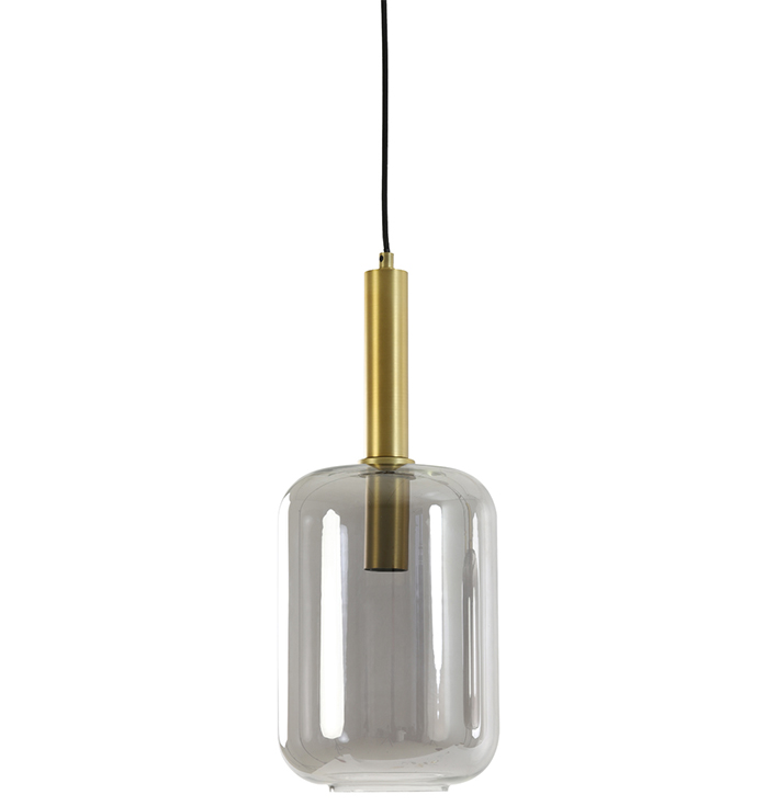 Hanglamp Lucca in antiek brons heeft een strakke, minimalistische vormgeving. Deze lamp past perfect in een modern interieur. De kap van grijs rookglas zorgt voor een sfeervolle uitstraling die je woonkamer of eetkamer verlicht met een subtiele elegantie.