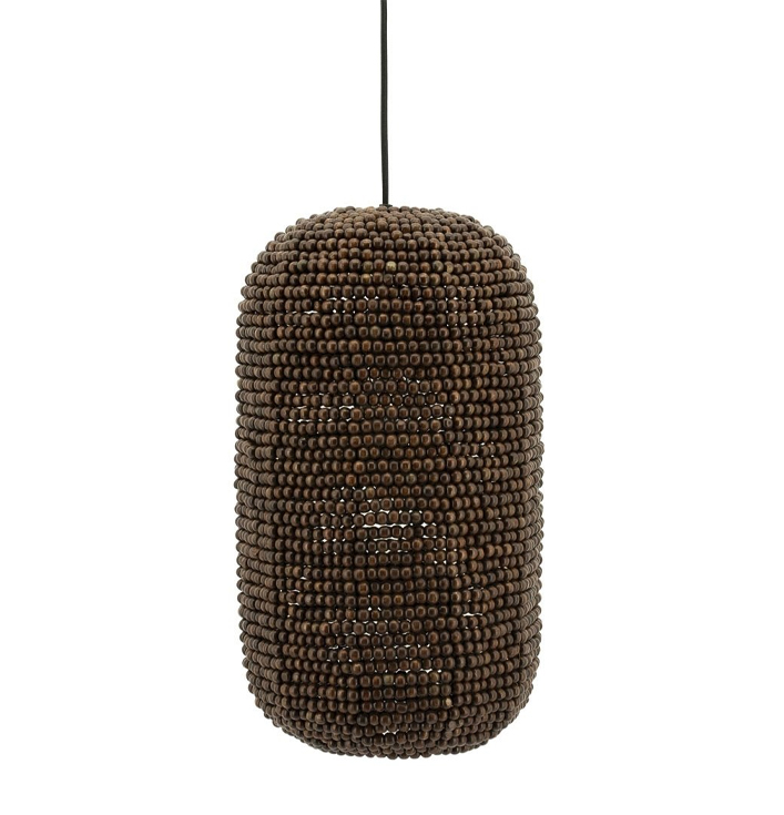 De Hanglamp Shanga 2 bruin brengt warmte en elegantie in elke woonruimte. Dit unieke ontwerp bestaat uit zorgvuldig geregen houten kralen die samen een stijlvolle cilindervorm creëren. Daardoor ontstaat er een lamp die niet alleen praktisch licht verspreidt, maar