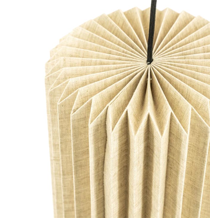 Een unieke hanglamp, gemaakt van papier en linnen. Het gevouwen ontwerp past perfect in een Japandi interieur! Hanglamp Zuki is verkrijgbaar in drie verschillende vormen die super leuk met elkaar kunt combineren!