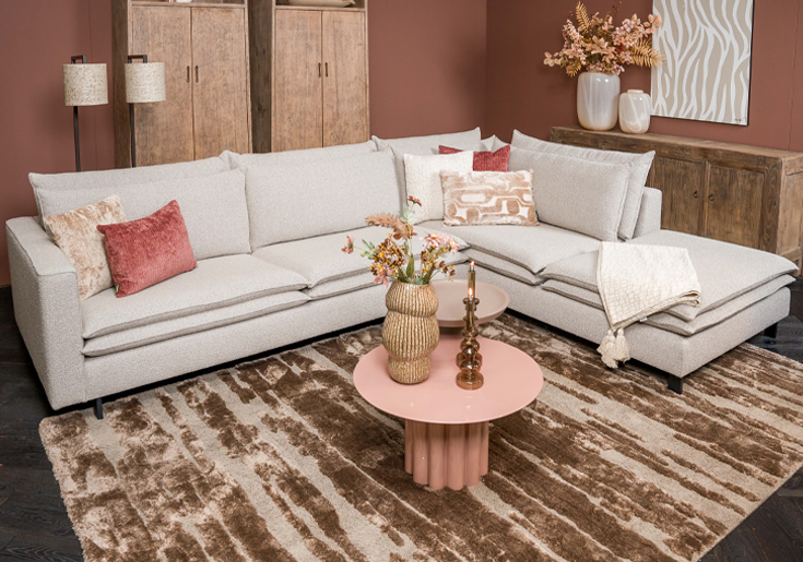 Op zoek naar een stijlvolle en comfortabele hoekbank? Hoekbank Nadine onderscheidt zich door haar unieke dubbele rug- en zitkussens, wat zorgt