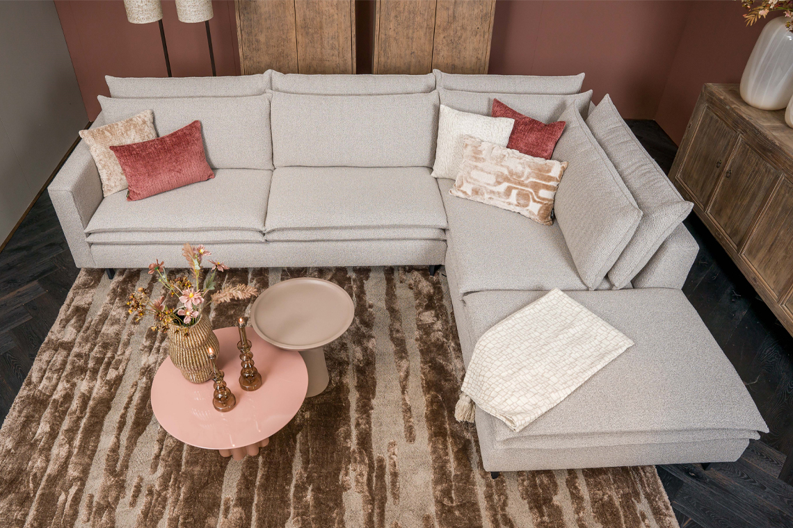 Op zoek naar een stijlvolle en comfortabele hoekbank? Hoekbank Nadine onderscheidt zich door haar unieke dubbele rug- en zitkussens, wat zorgt