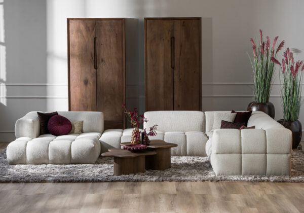 De Leefhoek Oriane past moeiteloos in verschillende woonstijlen, aangezien het ontwerp zowel modern als tijdloos oogt. De neutrale tinten combineren prachtig met natuurlijke materialen, zoals houten kasten, een hoogpolig vloerkleed of elegante accessoires. Verder zorgt de robuuste maar verfijnde vorm ervoor dat deze leefhoek jarenlang een blikvanger blijft.