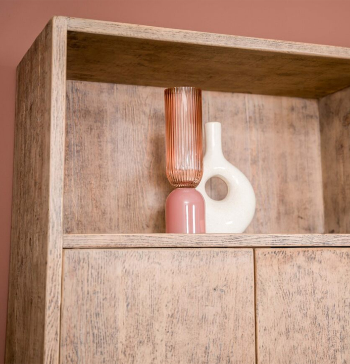 Deze kast is niet alleen praktisch, maar ook decoratief. Dankzij het open vak kun je jouw favoriete accessoires stijlvol tentoonstellen. Plaats er bijvoorbeeld een vaas, fotolijsten of sfeervolle verlichting in. Dit geeft de kast een speels en dynamisch effect. Zo wordt de kast niet alleen een opbergplek, maar ook een blikvanger in je interieur.