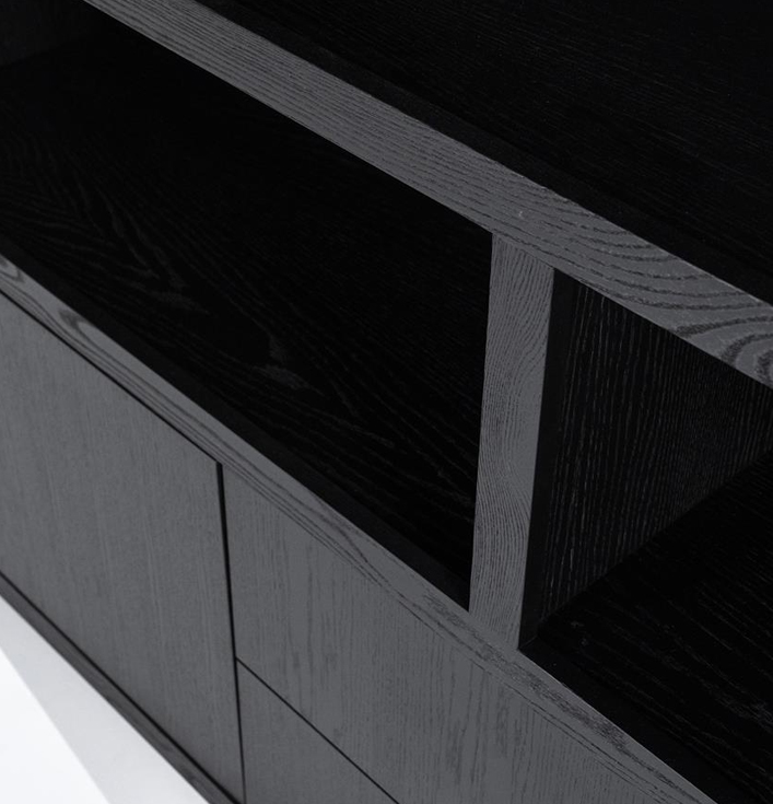 De kast heeft open vakken waar je items kunt decoreren, terwijl de gesloten compartimenten ervoor zorgen dat je spullen netjes opgeborgen blijven. Het stoere design geeft een industriële uitstraling die perfect past in moderne en minimalistische interieurs. De Hermani kast is niet alleen mooi, maar ook praktisch. Dankzij het handige ontwerp kun je je spullen opbergen of juist de open vakken gebruiken voor decoratieve elementen. De kast past perfect in een woonkamer, slaapkamer of hal, en biedt ruimte voor alles wat je nodig hebt. Ben je benieuwd naar deze kast? Kom dan zeker langs in onze showroom om de Hermani collectie in het echt te bewonderen. Ontdek de stoere en functionele meubels die jouw interieur compleet maken!look: De kast heeft een krachtige uitstraling door het gebruik van hout en strakke lijnen.