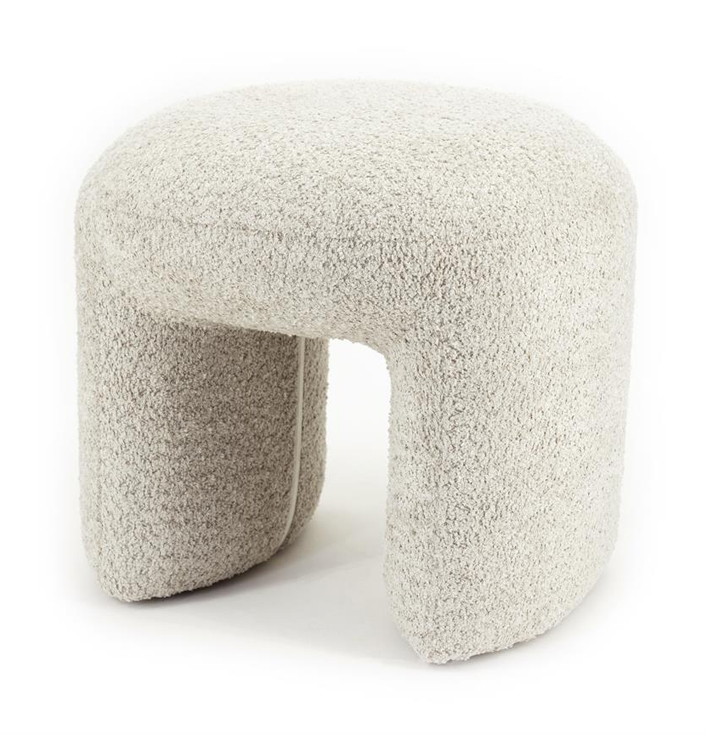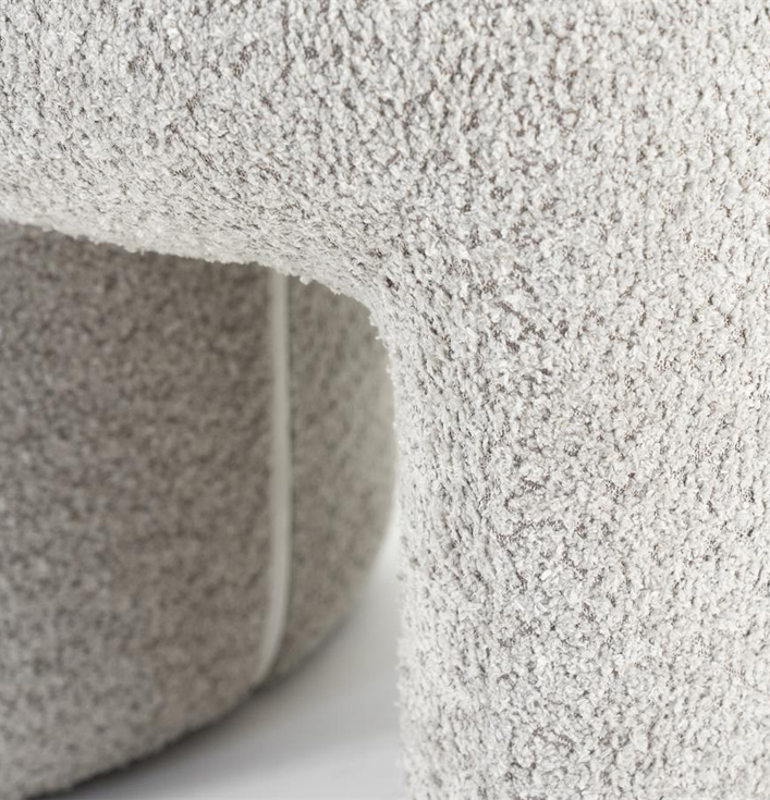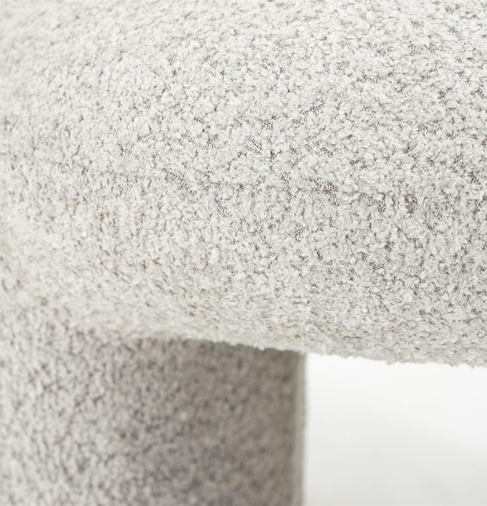 Het zachte bouclé bekleding van dit krukje zorgt niet alleen voor extra comfort, maar geeft het ook een luxe uitstraling. De textuur van de stof voegt charme toe en maakt het krukje niet alleen mooi, maar ook praktisch. Het is een ideale keuze om neer te zetten naast je bank of salontafel voor een leuk en functioneel plaatje.