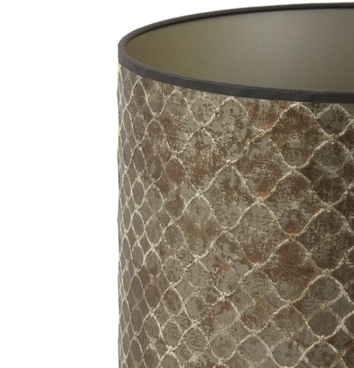 Lampenkap Elodi Brons is een prachtige keuze voor een chique uitstraling. Het bronskleurige textiel en de fluwelen afwerking maken hem uniek. Het patroon geeft de lampenkap een luxe uitstraling die elke kamer verrijkt. Dankzij de neutrale kleur