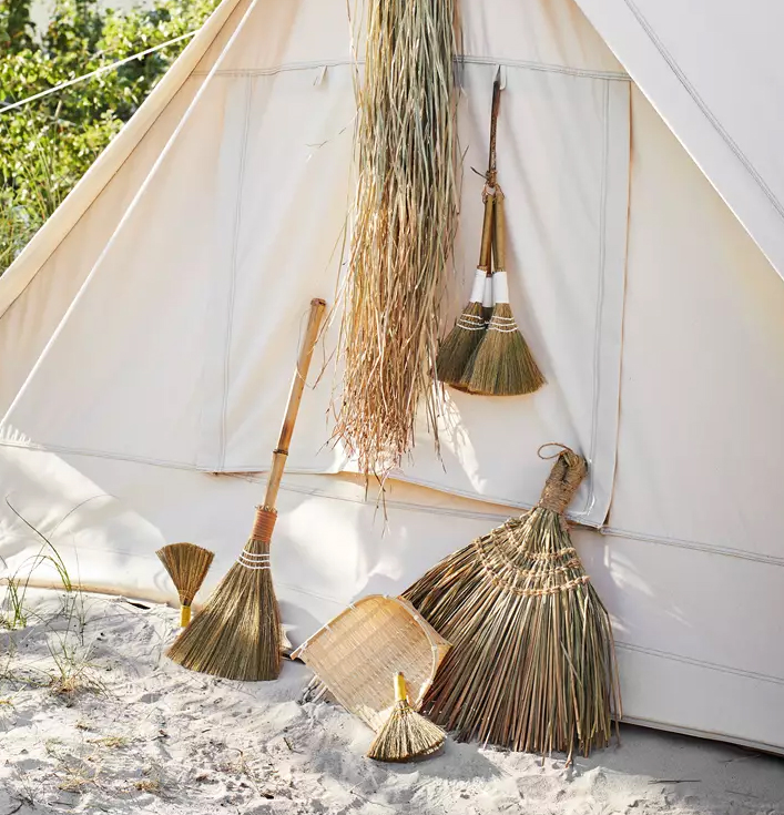 De bezem is gemaakt van natuurlijk stro, wat zorgt voor een warme en rustieke uitstraling die perfect past in verschillende woonstijlen, van bohemian tot landelijk. Hang hem op aan een haakje aan de muur of aan je kapstok, en je creëert direct een speelse sfeer in je ruimte.