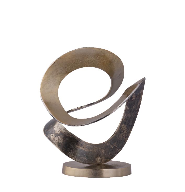 Dit item is ontworpen met een focus op natuurlijke schoonheid. De ronde, organische vormen doen denken aan de eenvoud en elegantie van de natuur, maar met een moderne twist. Het ornament is volledig gemaakt van metaal en heeft een prachtig gemêleerde gouden kleur die het stuk een luxe uitstraling geeft.