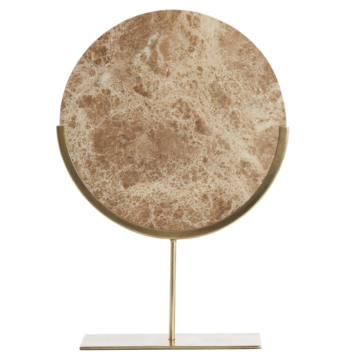 Ornament Moreno Marmer Bruin voegt een vleugje luxe toe aan je interieur. Dit prachtige ornament heeft een elegant ontwerp met bruin marmer en gouden details. Het ornament is gemaakt van metaal en heeft een tijdloze uitstraling die