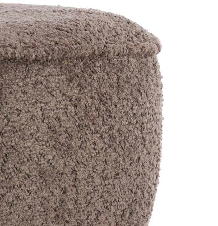 Poef Leyla Bruin brengt charme en comfort in je woning. Met zijn zachte bouclé stof en pluizige uitstraling heeft deze poef een knuffelfactor. De ronde vorm en bruin tint maken het de perfecte aanvulling voor elke ruimte.