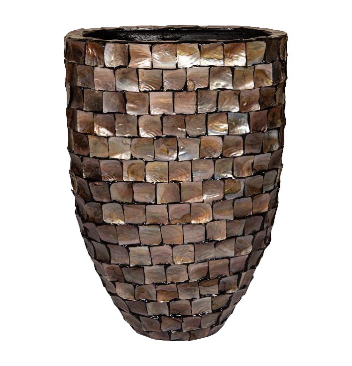 De Pot Daven Brons Ovaal is een combinatie van vakmanschap en natuurlijke schoonheid. Gemaakt van een unieke mix van polyresin en schelpen, brengt deze stijlvolle pot een vleugje exclusiviteit in uw interieur of tuin. Het ovale ontwerp voegt een speelse en toch verfijnde uitstraling