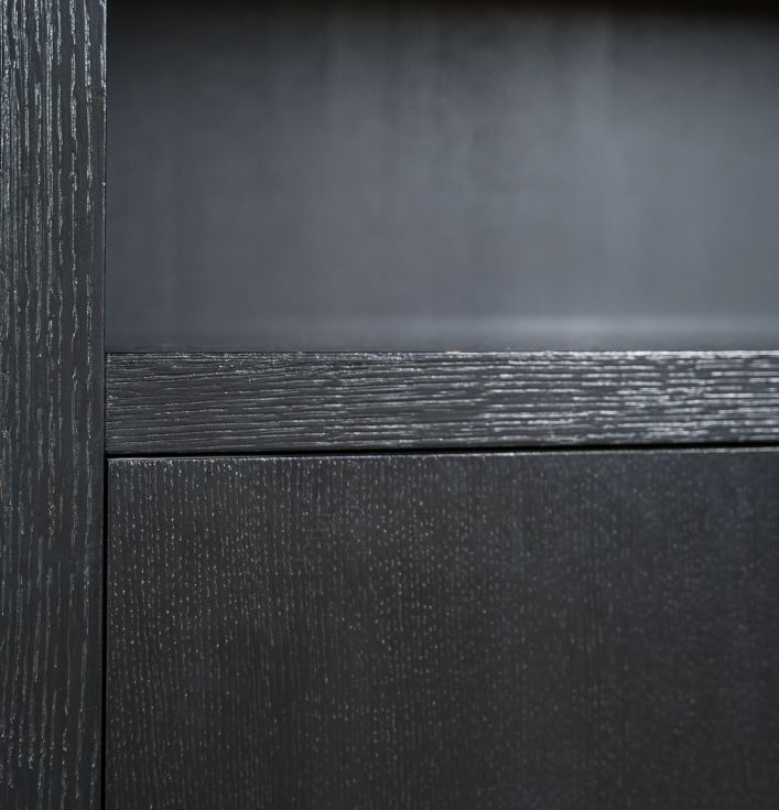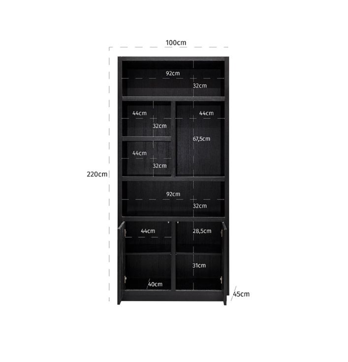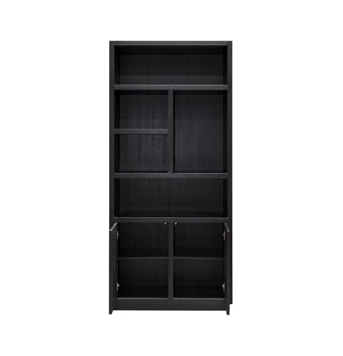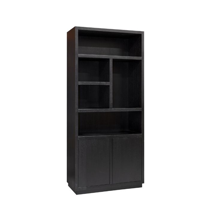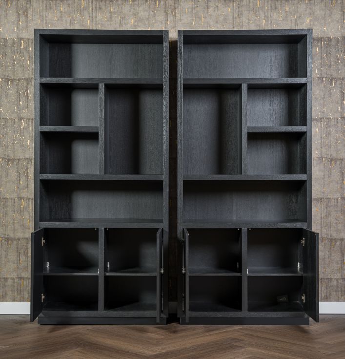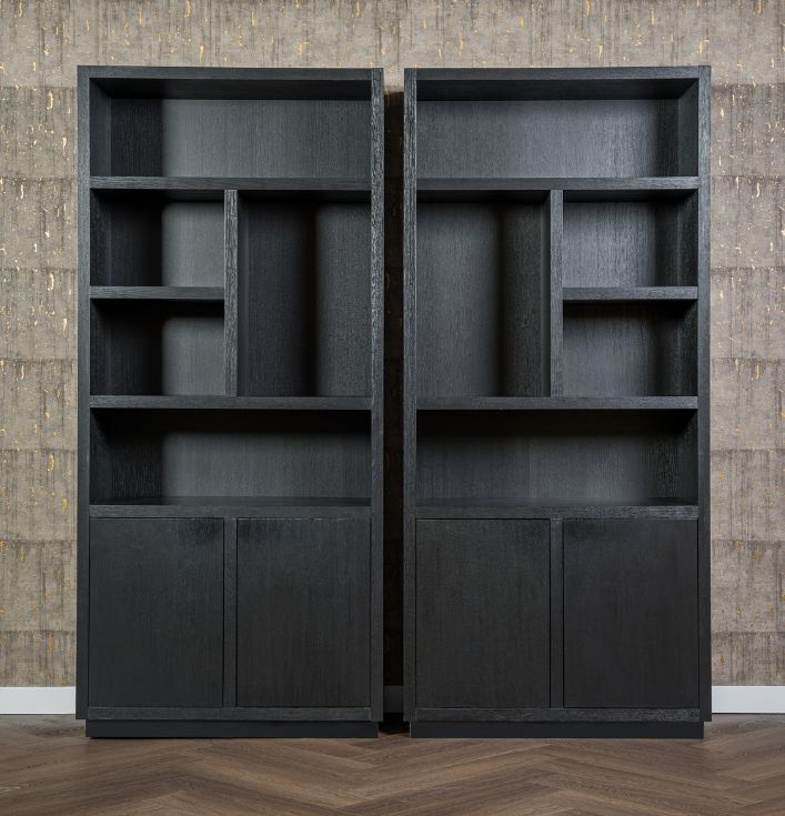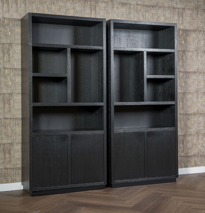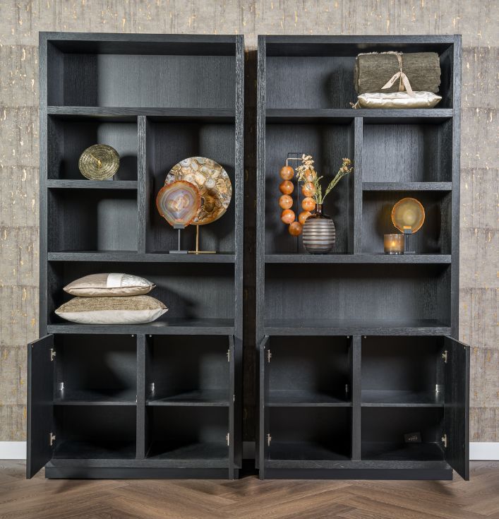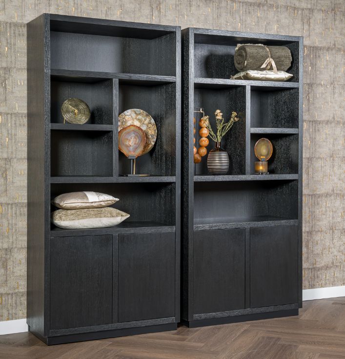 De Richmond Boekenkast Oakura Zwart is niet alleen een opbergmeubel, maar ook een decoratief statement in je huis. De strakke lijnen en het zwarte ontwerp zorgen voor een moderne uitstraling, die goed te combineren is met andere meubelstukken. Unieke indeling voor een gevarieerd interieur: Waarom kiezen voor de Richmond Boekenkast Oakura? Kom langs in onze showroom en ontdek de Richmond collectie. Er is altijd iets dat perfect bij jouw interieur past!De kast heeft open vakken in verschillende maten en 2 deuren voor extra opbergruimte.