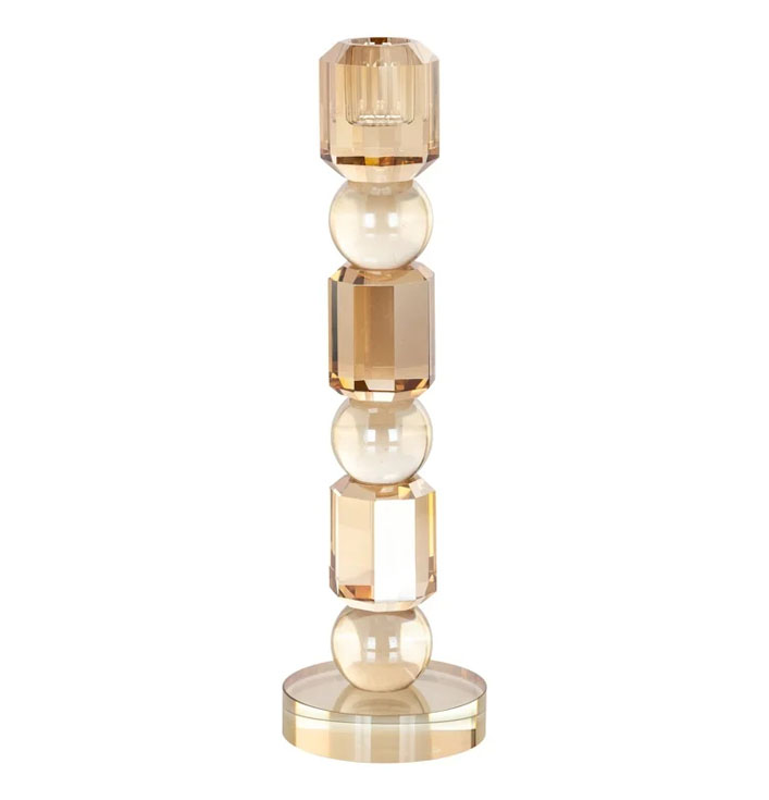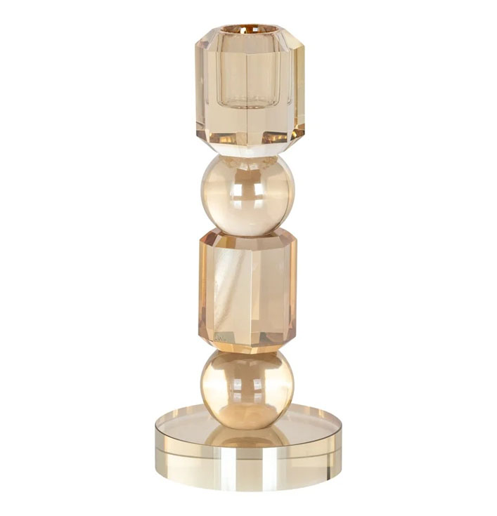 De Richmond kandelaar Meral brengt direct sfeer en gezelligheid in je huis. Het subtiele ontwerp van de kandelaar voegt op een verfijnde manier elegantie toe aan ieder interieur. De glazen afwerking zorgt ervoor dat het zachte kaarslicht op een