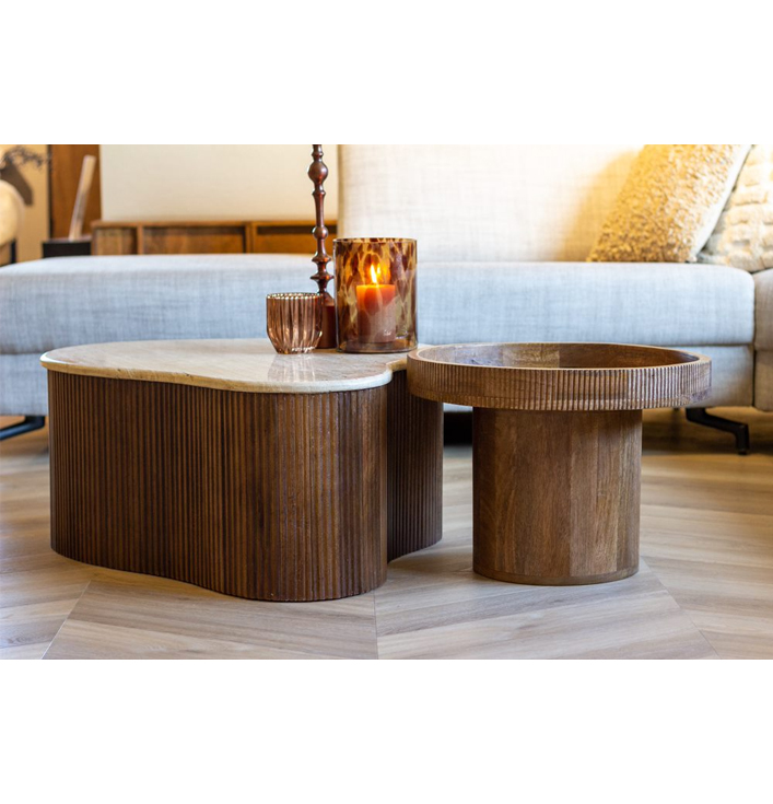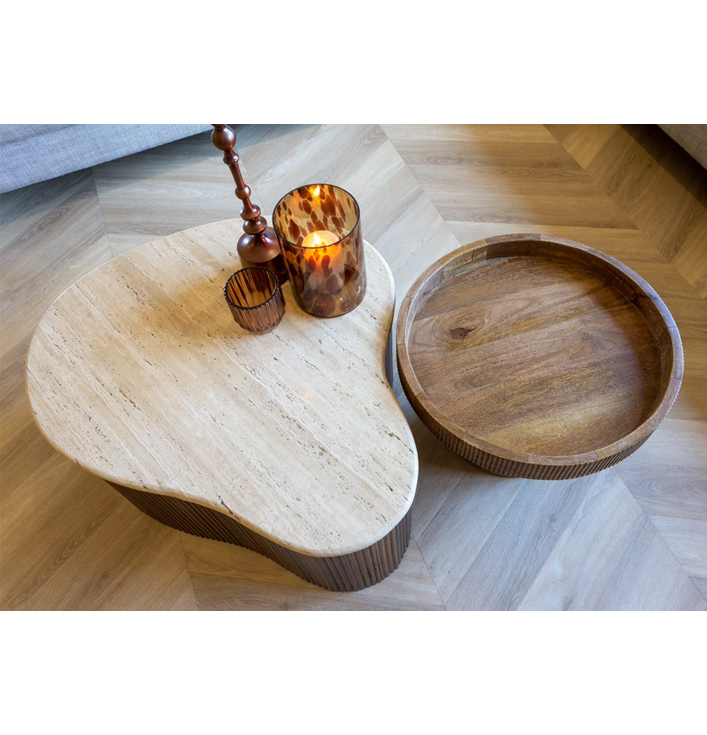 Salontafel Mari is ideaal om te combineren met andere materialen voor een speels effect. Bijvoorbeeld: