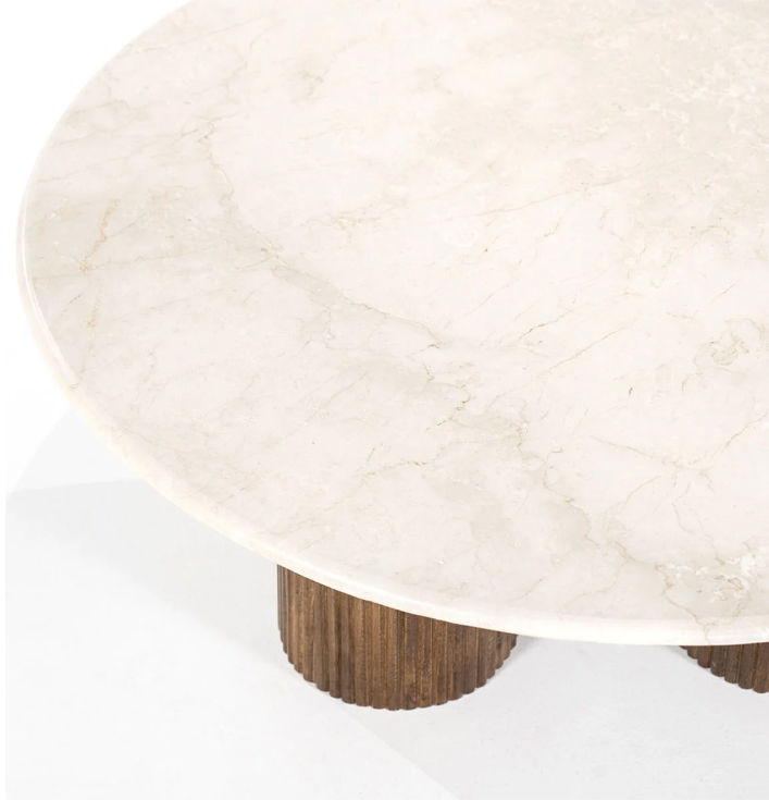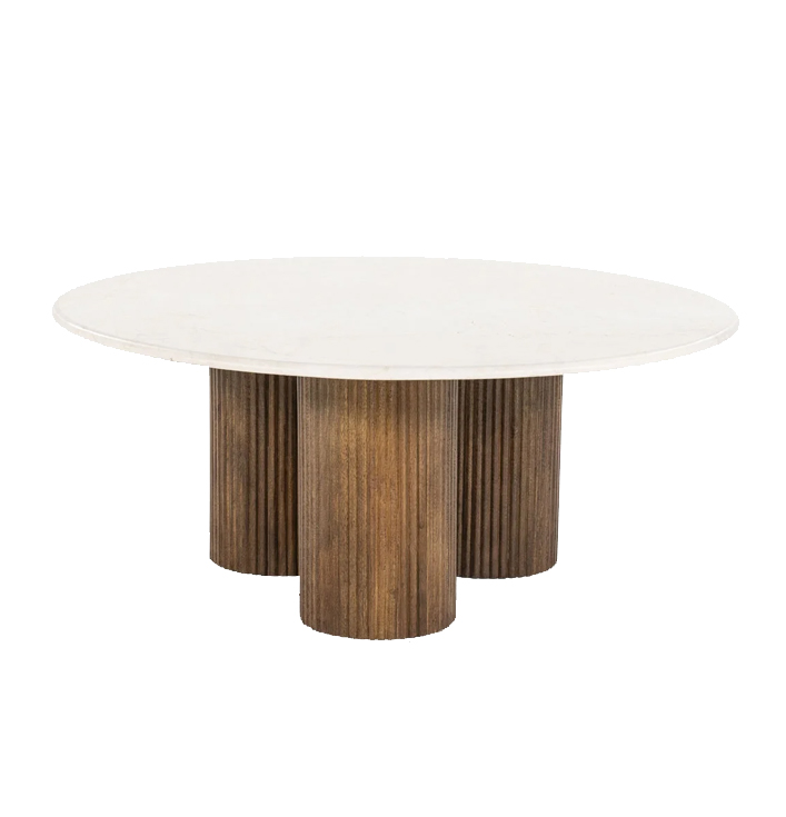Deze schitterende salontafel kenmerkt zich door de fantastische combinatie van marmer en hout. Xavi pronkt met een rond marmeren blad rustend op elegante, houten poten. Het speelse karakter van de tafel wordt versterkt door de ronde vorm van de drie poten. Deze tafel is een echte blikvanger voor in