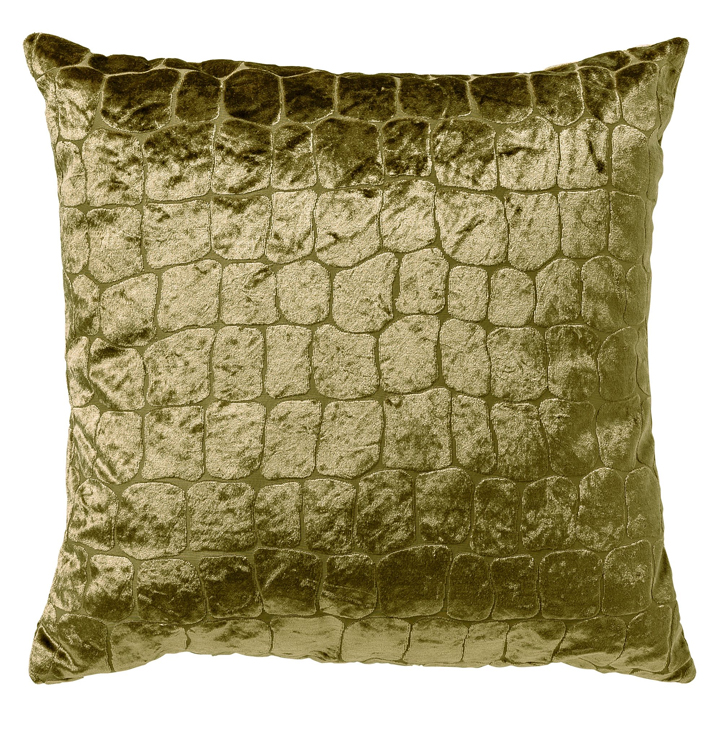 Sierkussen Colette Olive Branch is het stoere en luxe accent dat je interieur nodig heeft! Ten eerste, de glanzende fluwelen stof met een gave krokoprint valt direct op en voegt een