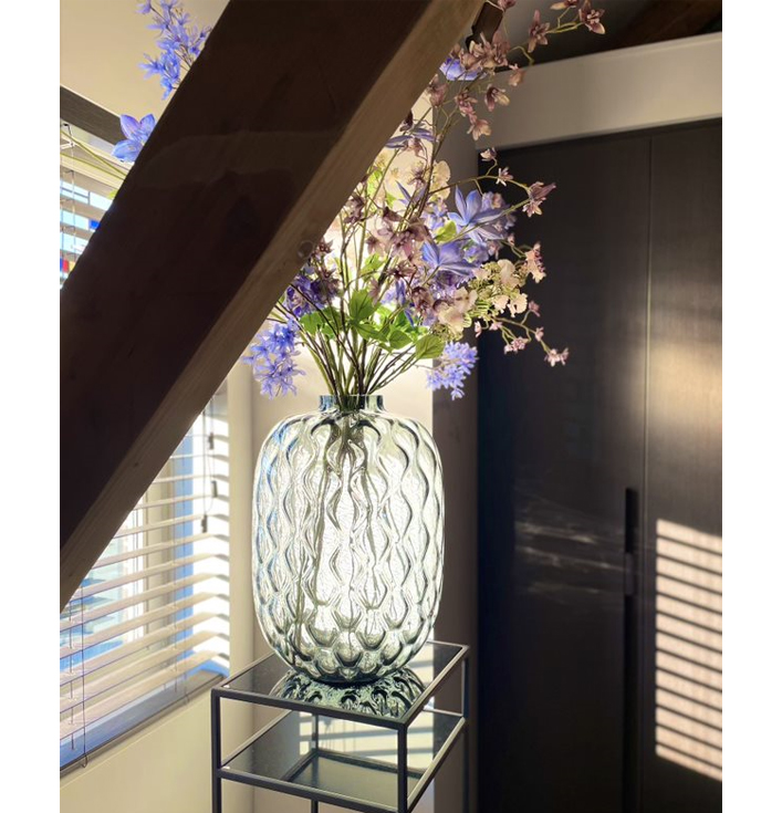- Verfraai je ruimte: Plaats de vaas op een dressoir, salontafel of plank voor een subtiele, maar opvallende toevoeging aan je ruimte.