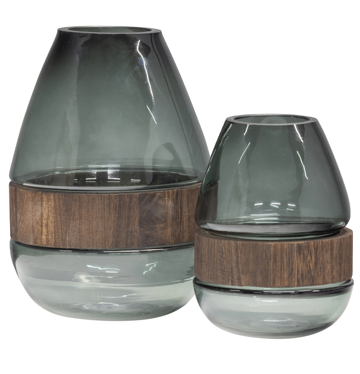 Vaas Dave Blauw is de perfecte balans tussen elegantie en stoerheid. Het geblazen glas in blauwe en groene tinten straalt warmte uit, terwijl het houten detail een eigentijdse twist toevoegt. Met deze vaas geef je jouw bloemen een prachtige setting en creëer je een sfeervol geheel in je interieur.