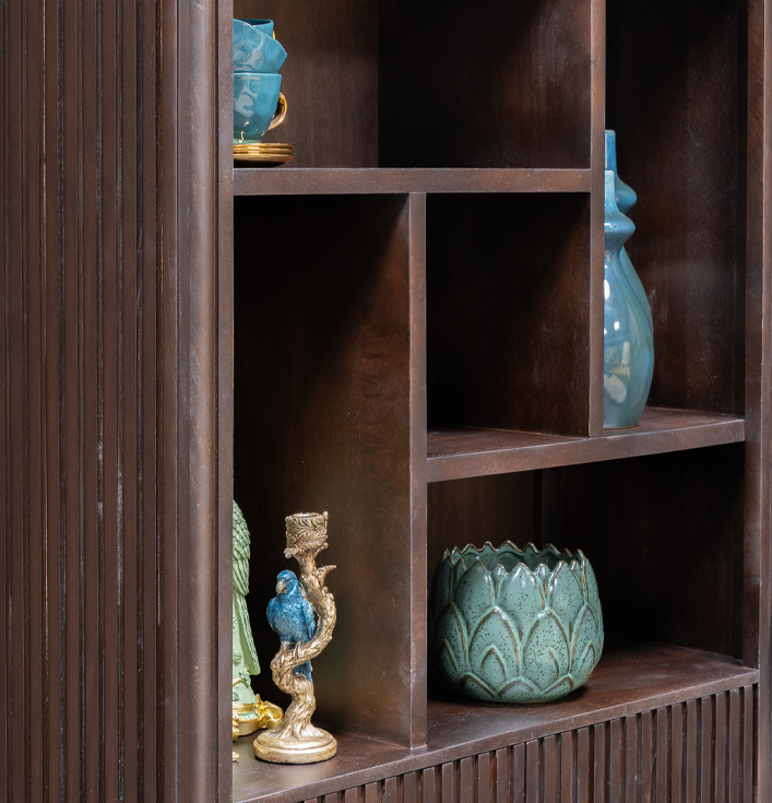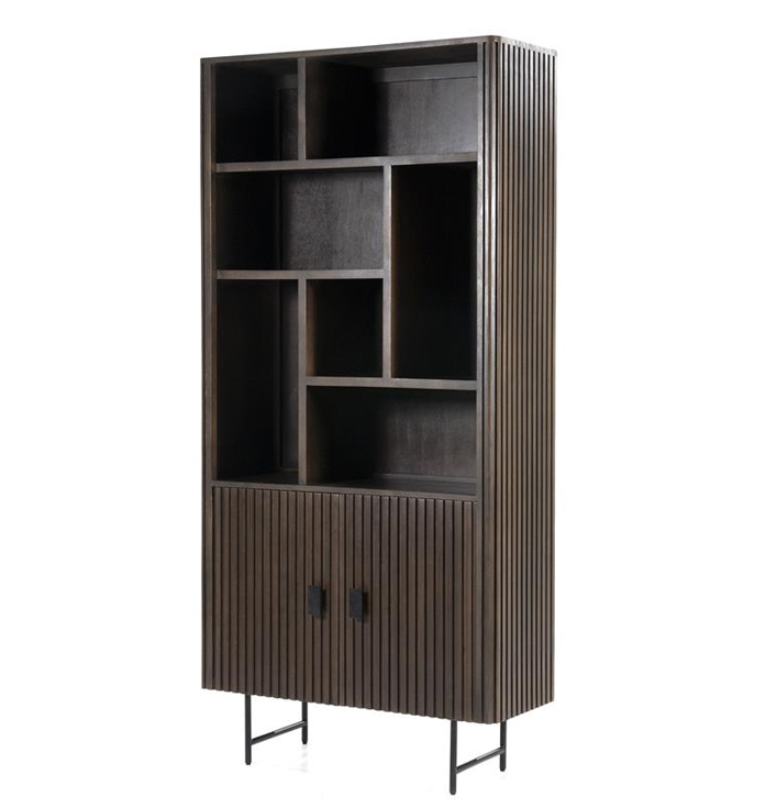 De vakkenkast Risor heeft een warme bruine kleur die zorgt voor een gezellige sfeer. De kast is niet alleen mooi, maar ook heel praktisch door de open vakken en deurtjes voor extra opbergruimte. Dit maakt de kast ideaal voor het plaatsen van boeken, decoratie of persoonlijke spullen.