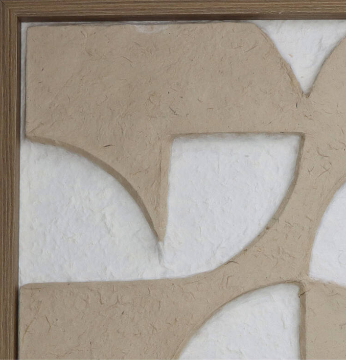 Dit wandornament is niet zomaar een decoratie, het is een kunstwerk! Het minimalistische ontwerp zorgt voor een gevoel van rust en eenvoud. Gemaakt van papier maché, is het ornament licht en gemakkelijk op te hangen. Dankzij de