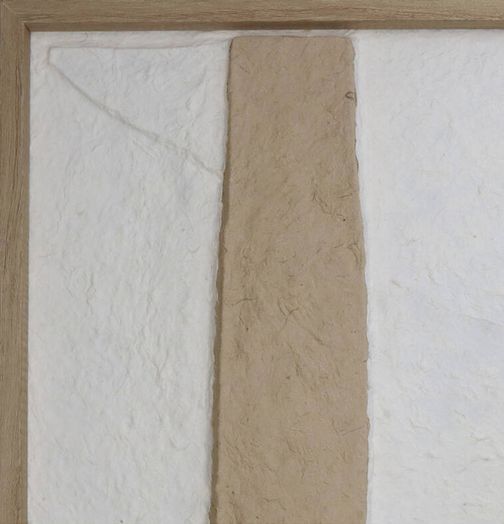 Dit wandornament is een kunstwerk dat eenvoud en rust uitstraalt. Het abstracte ontwerp maakt het ideaal voor diverse interieurstijlen. Gemaakt van papier maché, heeft het ornament een unieke, ruwe textuur die de natuurlijke charme versterkt.