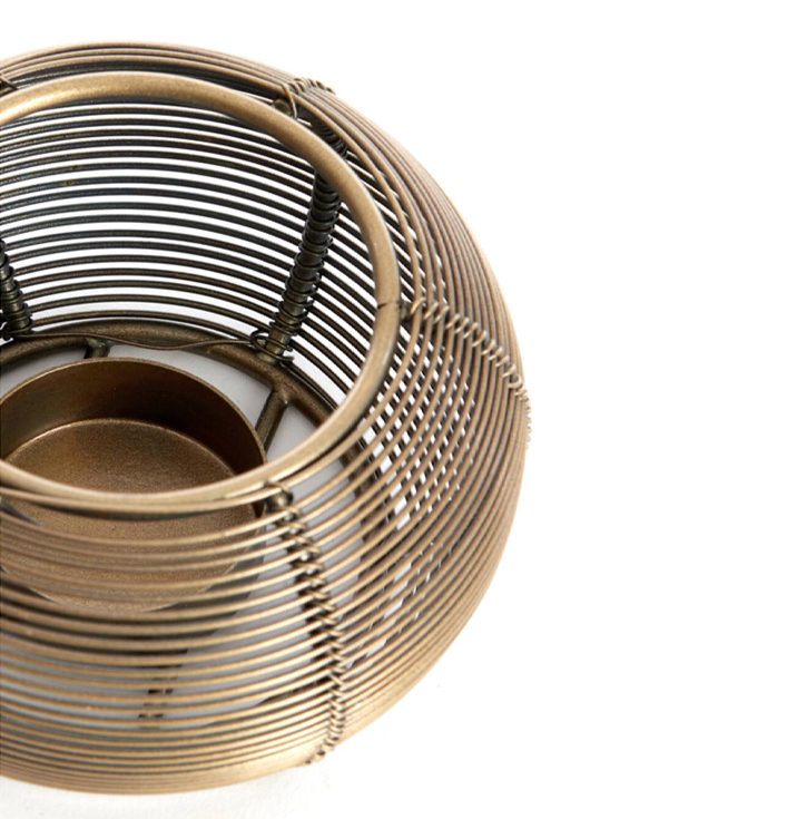 Waxinelichthouder Biano zorgt voor een gezellige sfeer in huis. Door de metalen draadjes schijnt er op een bepaalde manier warm en sfeervol licht doorheen. Het is een prachtige aanvulling op een dienblad of tafel en combineert perfect met andere decoratieve accessoires voor een stijlvolle uitstraling!